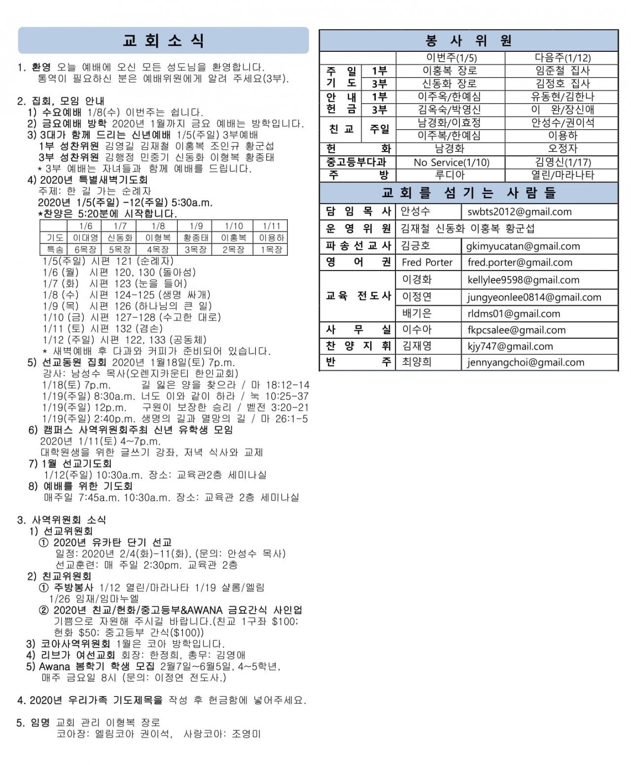 2020년 1월5일 주보