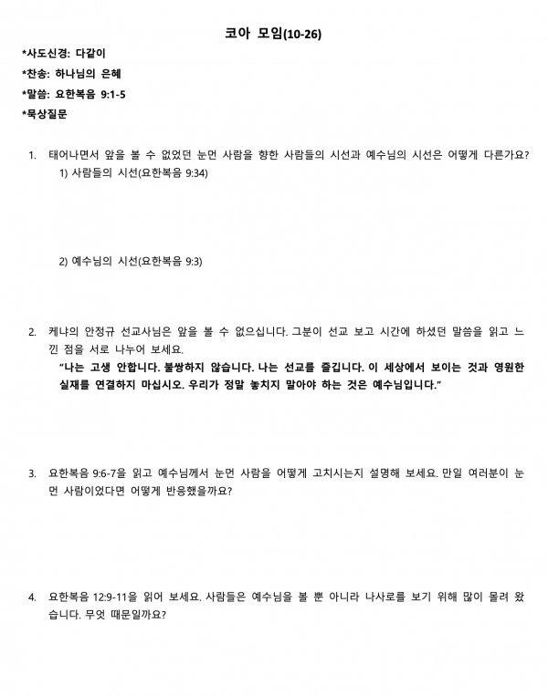 2025년 10월 26일 주일 예배