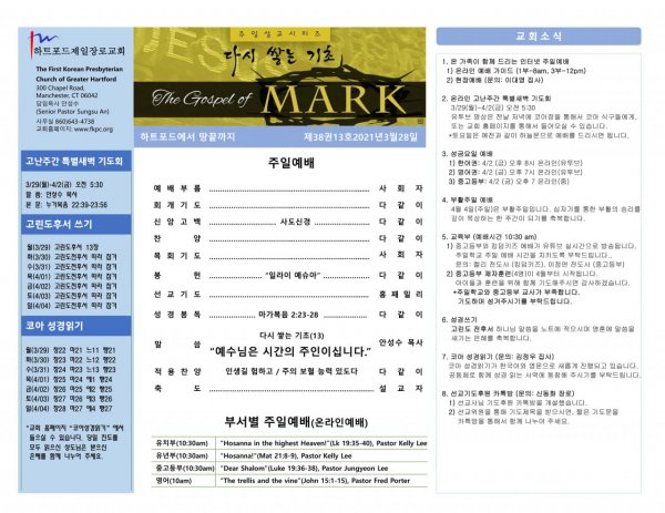 2021년 3월 28일 주일예배