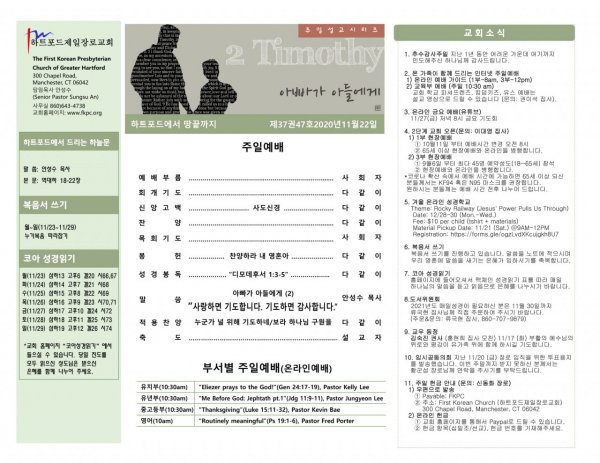 2020 년 11월 22일 주일예배