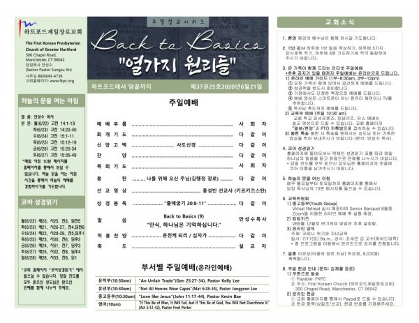 2020년 6월 21일 주일 예배
