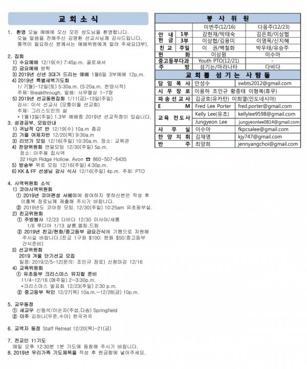 12월23일 2018 성탄주일