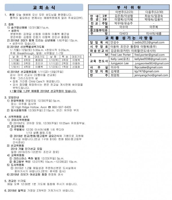 2018년 12월 23일 주일 설교