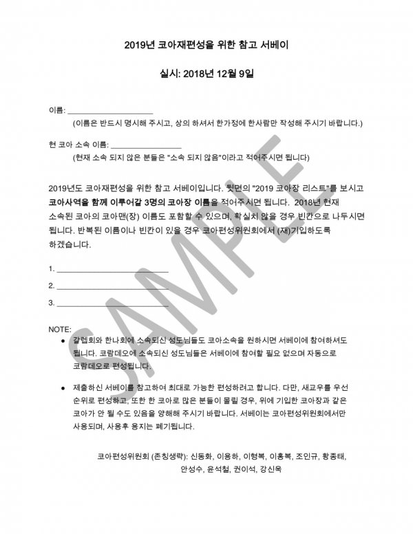 2019년 코아 재편성을 서베이 광고