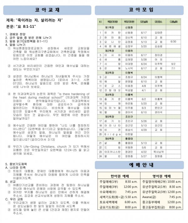 6월24일 교회소식