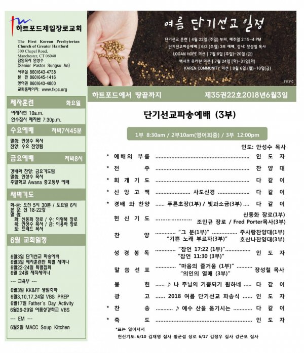 날짜: 2018.06.03 글쓴이 : 사무실 | 교회소식
