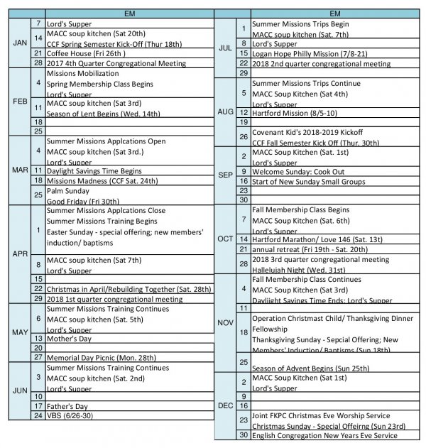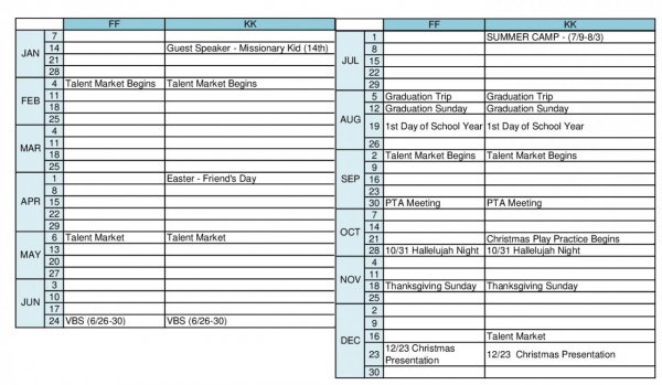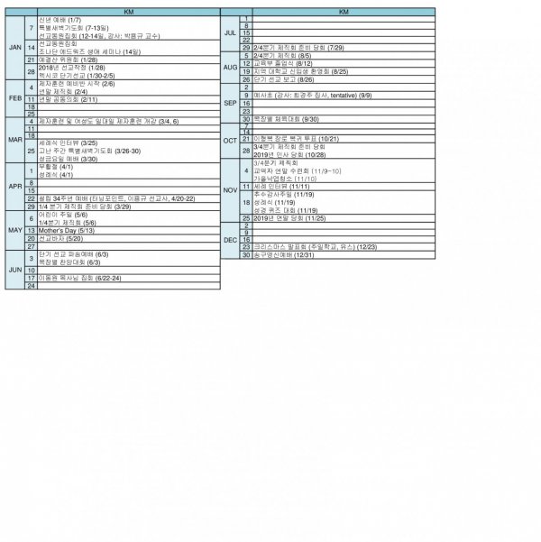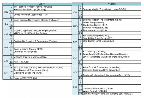 2018년 중고등부 행사계획