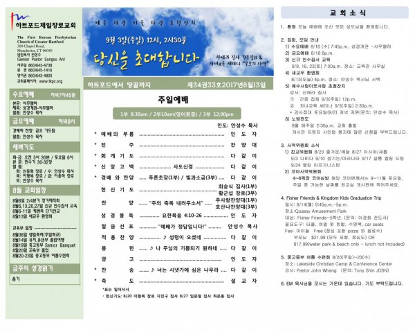 8월13일 교회소식