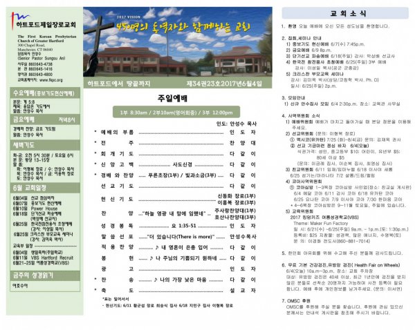 날짜: 2017.06.06 글쓴이 : 사무실 | 교회소식